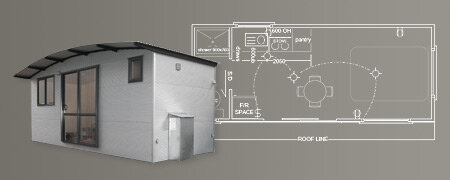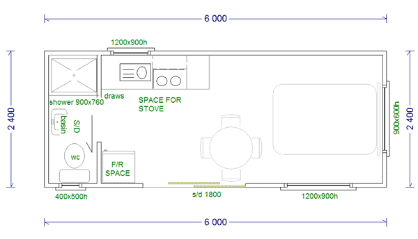 The "Kestrel" is an open plan studio cabin. Fully self contained with a shower, toilet and small kitchen with room for a double bed and small table and chairs.